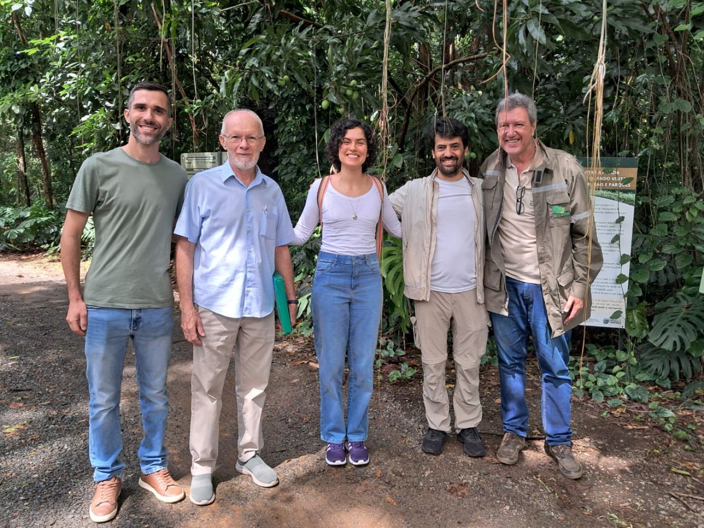 Da esquerda para a direita da foto temos: Cristiano Crepsky - Biólogo da Fundação, Joao Proteti, Rebeca Ribeiro ,Lucas Veja e o Presidente da Mata, Rogério Menezes.