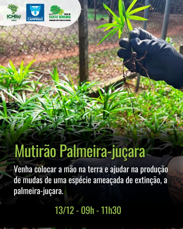 No dia 13/12, das 09h às 11h30, no viveiro de mudas nativas da Mata, faremos um mutirão para a produção de mudas da palmeira-juçara.