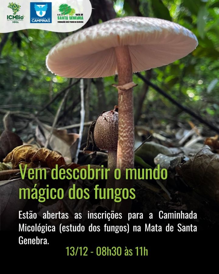 No dia 13/12 (sábado), às 8h30, acontecerá a Caminhada Micológica (estudo dos fungos) na Mata de Santa Genebra.