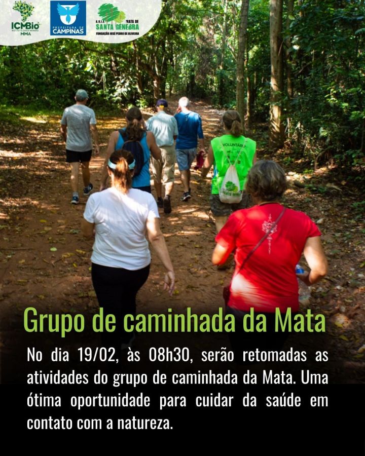 No dia 19/02, às 08h30, retornam as atividades do grupo de caminhada da Mata. Em 2026 as atividades serão realizadas às quintas-feiras.